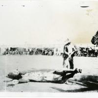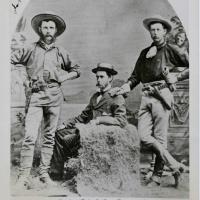 Three men posing for a picture in 1879 after Edward L. Vail (the tenderfoot's) arrival at Empire Ranch. Walter L. Vail and Herbert R. Hislop bought the Empire Ranch on August 22, 1876 from E.N. Fish and Silverberg. John H. Harvey was brought on as…