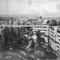 Watering horses after a round up.